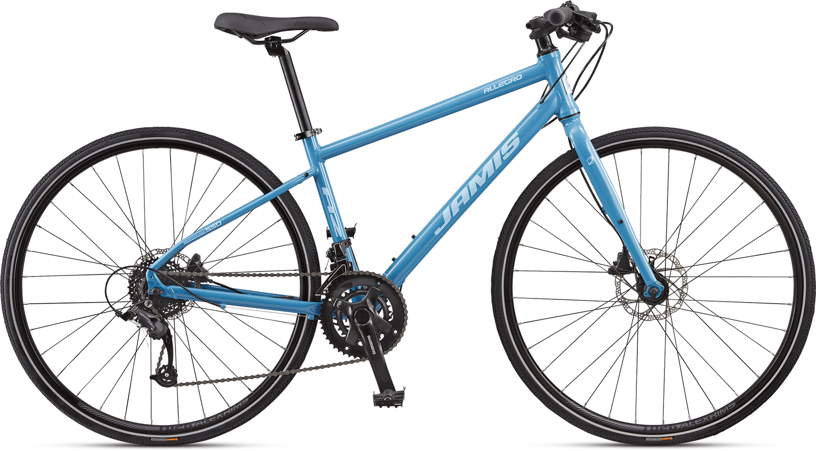 The Allegro A2 is a Jamis Allegro fitness hybrid, combining the speed of a road bike with the comfort and control of a flat bar handlebar.